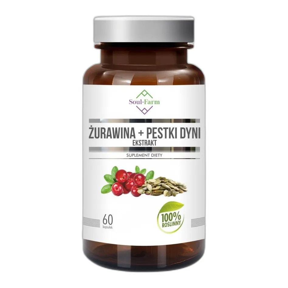 Produkt zawiera suszone ekstrakty z żurawiny (Vaccinium macrocarpon) i pestek dyni (Cucurbita pepo). Wzór kwasu chinowego: C₇H₆O₅. CAS żurawiny: 479-89-2. Forma: proszek w kapsułkach. Czystość ekstraktów: min. 95%. Masa molowa dominujących związków: 170–500 g/mol. Przeznaczenie: wyłącznie techniczne.