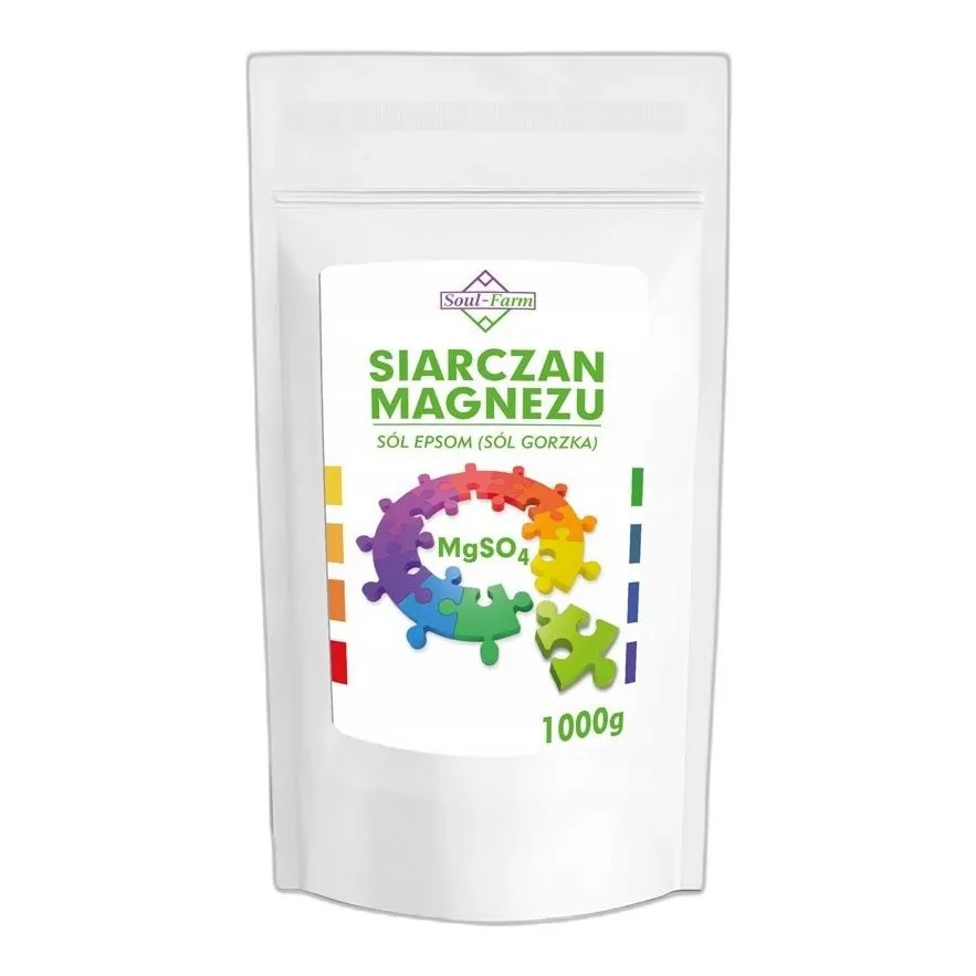 Siarczan magnezu to związek nieorganiczny. Wzór chemiczny: MgSO4·7H2O. CAS: 10034-99-8. Czystość: min. 99%. Forma: biały proszek. Masa molowa: 246,47 g/mol. Rozpuszczalny w wodzie.