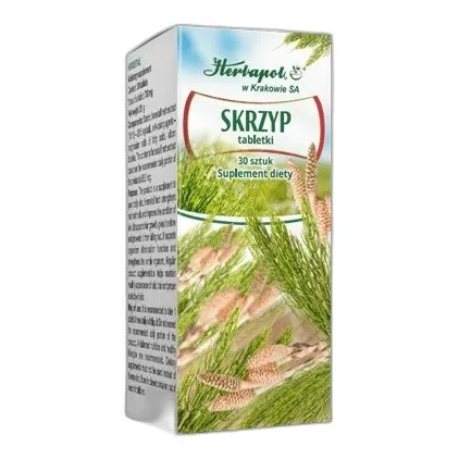 Skrzyp zawiera krzemiany, flawonoidy, kwas kawowy. Wzór krzemu: SiO2. CAS: 7631-86-9. Forma: tabletki. Czystość ekstraktu: min. 95%. Masa molowa krzemu: 60,08 g/mol. Nie zawiera dodatków sztucznych.