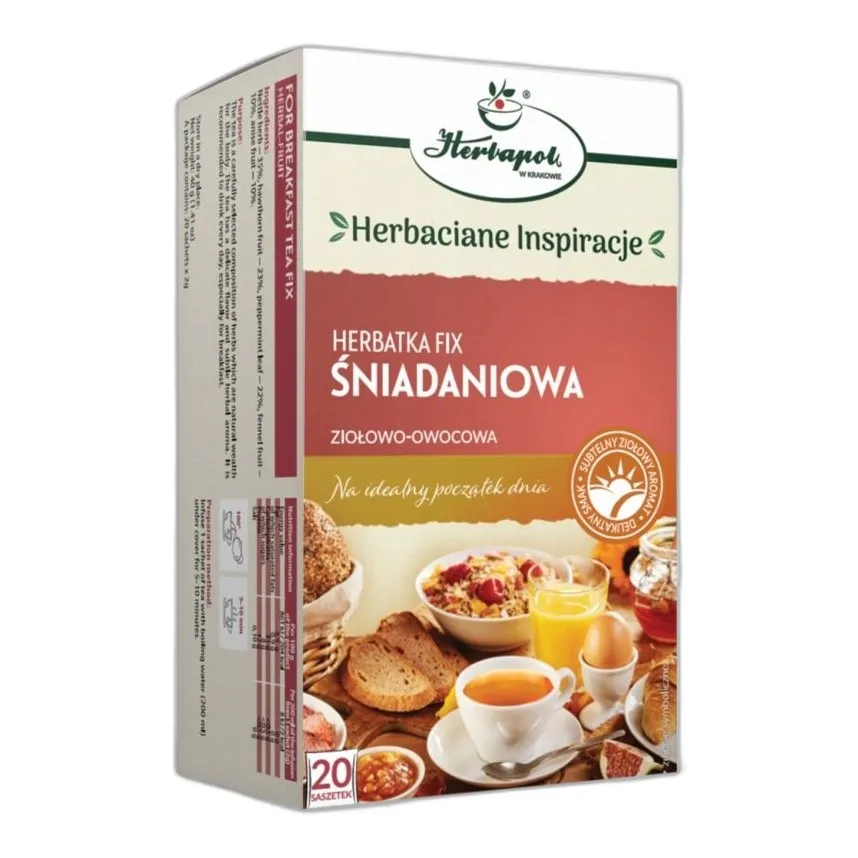 Mieszanka suszonych roślin o działaniu tonizującym. Przeznaczona do parzenia jako napój poranny. Zawiera ekstrakty ziołowe wspomagające codzienne funkcje organizmu. Produkt w formie gotowych do użycia saszetek.